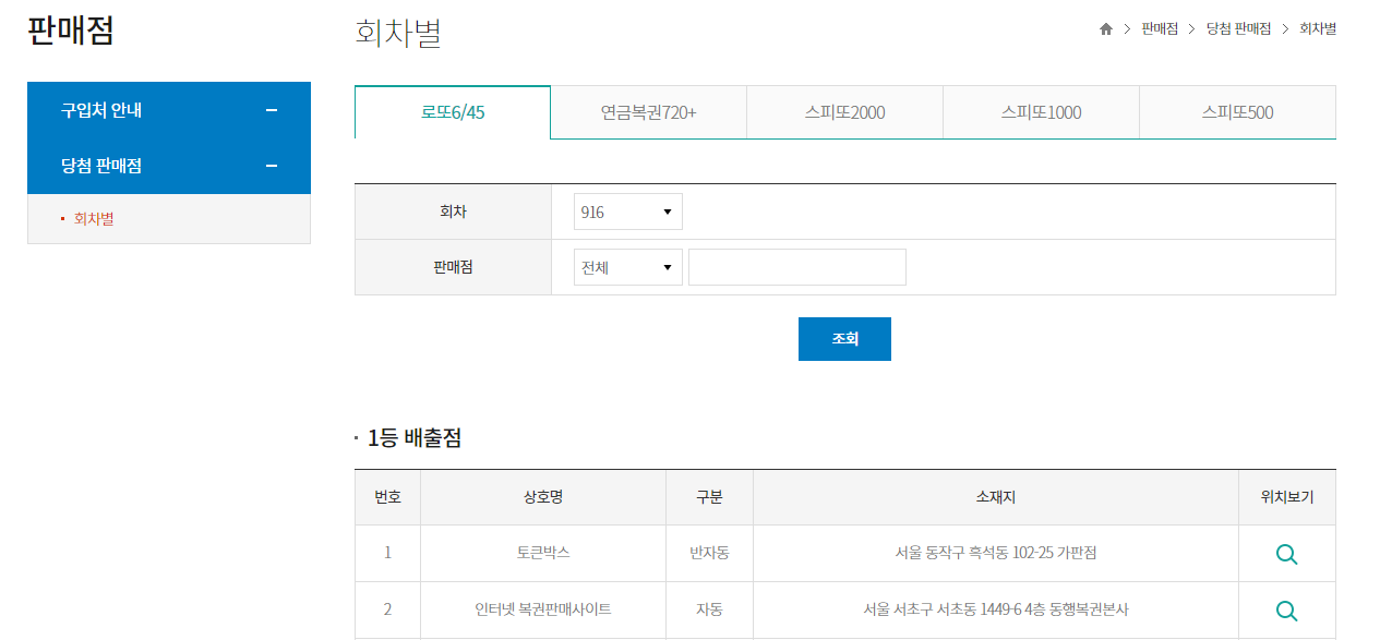driver.get('https://dhlottery.co.kr/store.do?method=topStore&pageGubun=L645')