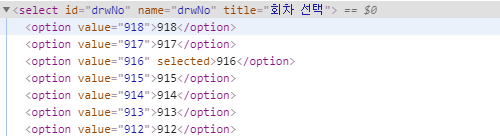 select_drw = Select(driver.find_element_by_id("drwNo"))