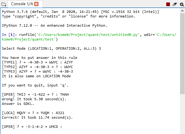 다음과 같이 어떤 도형이 문자열의 순서를 바꾸거나 문자를 증감시키는 조건을 파악하여 주어지는 문자열이 해당 도형에서 어떤 문자열로 바뀌는 지를 추리하는 문제다. 유형에 익숙해지면 시간 단축을 꼭 해야하는 거저주는 문제로 대표되는데 이를 위해 훈련이 필요하다 판단하여 간단한 파이썬 프로그램을 만들었다.