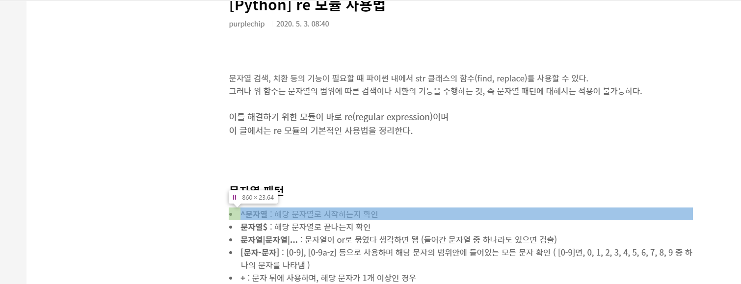 (1) import re 라는 부분을 위에서 했던 과정을 거쳐 커서로 갖다댄다.